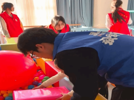 一对一助教,专业陪伴暖童心在感统训练区,孩子们在志愿者引导下进行软质积木搭建,锻炼手部精细动作与平衡能力;认知游戏区中,通过水果动物配对卡片、颜色分类罐等游戏,增强孩子们的认知与表达能力;语言训练环节,志愿者通过节奏模仿游戏,激发孩子的语言表达与模仿意愿。