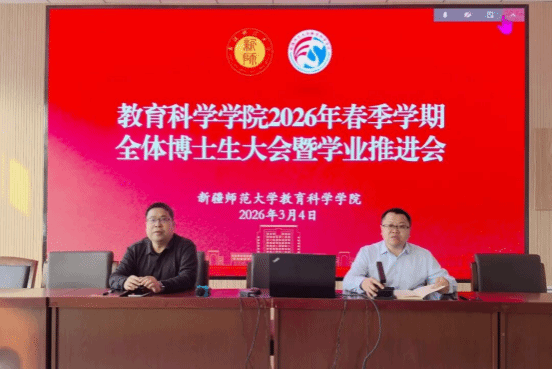 为扎实推进新学期研究生思想政治教育,筑牢意识形态安全防线,提升学风建设,近日,教育科学学院召开了硕博研究生新学期思想政治教育暨学业推进会议,教育科学学院院长程良宏、副院长马秀麟,法治辅导员马雷刚、研究生秘书杨雪霜、研究生辅导员木丽得尔·毛力提及全体硕博研究生参会。