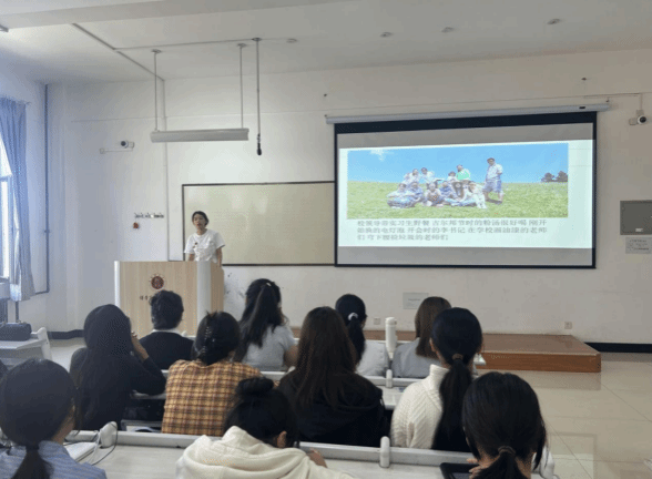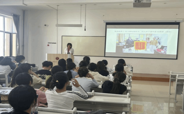 实习支教带队老师周庆莲围绕其带队支教的经历展开讲述。她细致回顾了支教过程中,全体支教学生的日常点滴与成长轨迹,生动呈现了学生们在实践中的进步与蜕变。分享尾声,周庆莲老师结合支教经验,针对下一届学生提出具体建议,并寄予期望,为学生们后续的实习实践提供了方向指引。